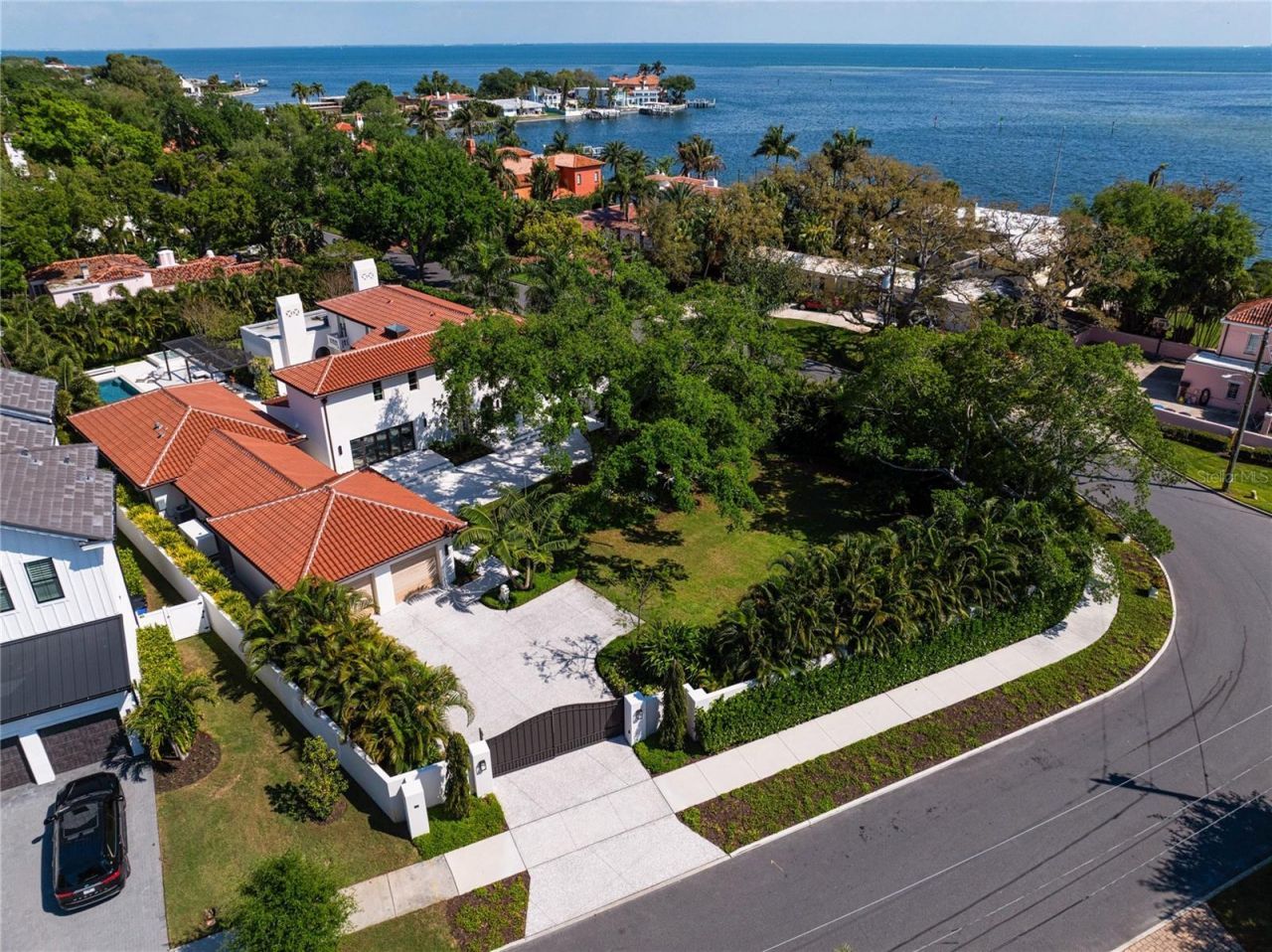 Brightleaf is a rare and significant Snell Isle estate, originally designed in 1925 by renowned firm Kiehnel & Elliott and masterfully rebuilt to the standards of modern luxury. Following a comprehensive four-year renovation by architect Greg Jones and builder Carmine Pici of Tom Pici & Son, the home has been fully reengineered with all new mechanical, electrical, plumbing, and climate systems - so extensive it is classified by insurance as 2024 new construction. Privately set behind a gated drive and separate pedestrian entrances, seamlessly integrated into a 7-foot perimeter privacy wall, the property offers exceptional security and seclusion. Landscape architect Michael Gilkey reimagined the grounds in their entirety, creating a cohesive and refined outdoor environment that complements the home's architecture. The estate spans 6065 square feet and includes 5 bedrooms, 5.5 baths, and a detached guest house designed to the same exacting standards as the main residence. The guest house features a private entrance, kitchen with premium appliances, dedicated living space, bedroom, and bath - ideal for extended stays, multigenerational living, or private guest accommodations. Interior spaces are defined by timeless materials and exceptional craftsmanship, including large-format Turkish limestone flooring throughout the main living areas and rift-cut white oak extending through the kitchen, upper level, and guest house. Custom cabinetry by Michael Bright and T2theS showcases precision joinery and clean, modern lines, while curated lighting selections elevate each space. The main kitchen is fully appointed with Wolf, Sub-Zero, Miele, and Cove appliances, complemented by reverse osmosis water filtration systems at every draw in both the main residence and guest house. Outdoor living is centered around a resort-style zero-edge infinity pool with an advanced ozone purification system, creating a pristine and low-maintenance environment. The home is equally impressive in its infrastructure, featuring a 60kW Generac whole-house generator, four independent HVAC systems, three tankless water heaters, foam insulation beneath all rooflines, and integrated whole-property audio/visual systems. The renovation encompassed every aspect of the estate, including a new roof, impact-rated windows and doors, three dramatic bifold openings, updated water management systems, a new mechanical room, wellness studio/gym, and a spacious two-car garage. All exterior elements including the pool, driveways, and walkways were newly constructed. Situated on an expansive 27,743 square foot lot, one of the largest on Snell Isle, the property offers an unmatched sense of scale, privacy, and presence. Brightleaf represents a convergence of historic architectural pedigree and modern construction, offering a fully reimagined estate in one of St. Petersburg's most prestigious neighborhoods.